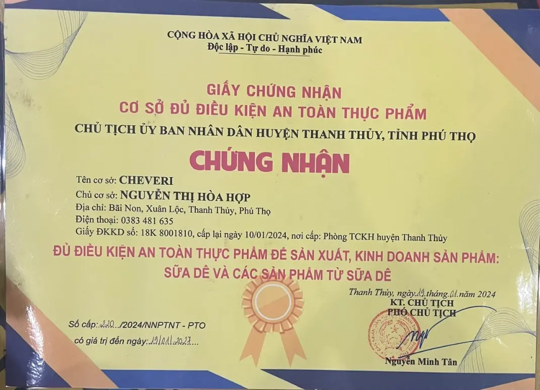 GIẤY PHÉP VÀ CHỨNG NHẬN CHẤT LƯỢNG CHEVERI
